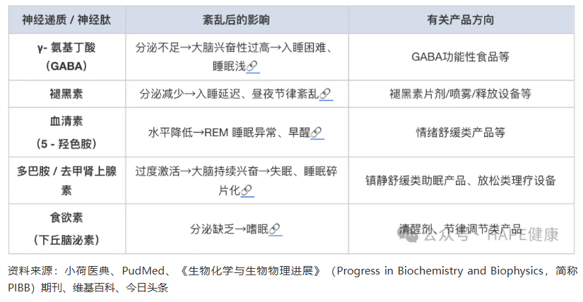 中樞神經遞質的平衡直接影響睡眠的誘導、維持與覺醒,不同遞質紊亂對應不同睡眠一定程度的影響,為產品成分選擇、功能定位提供了參考依據。